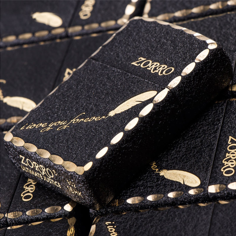 ZORRO磨砂黑花边切羽毛割定制送男士纯铜煤油防风个性打火机潮男
