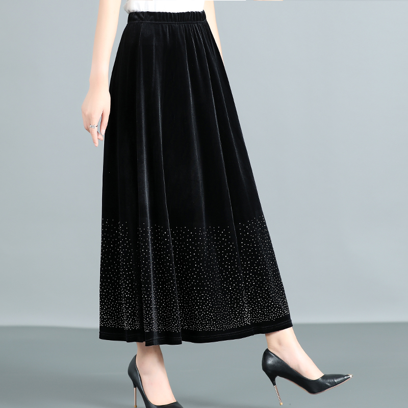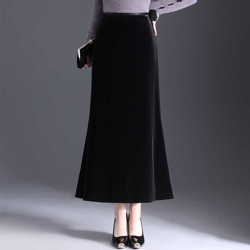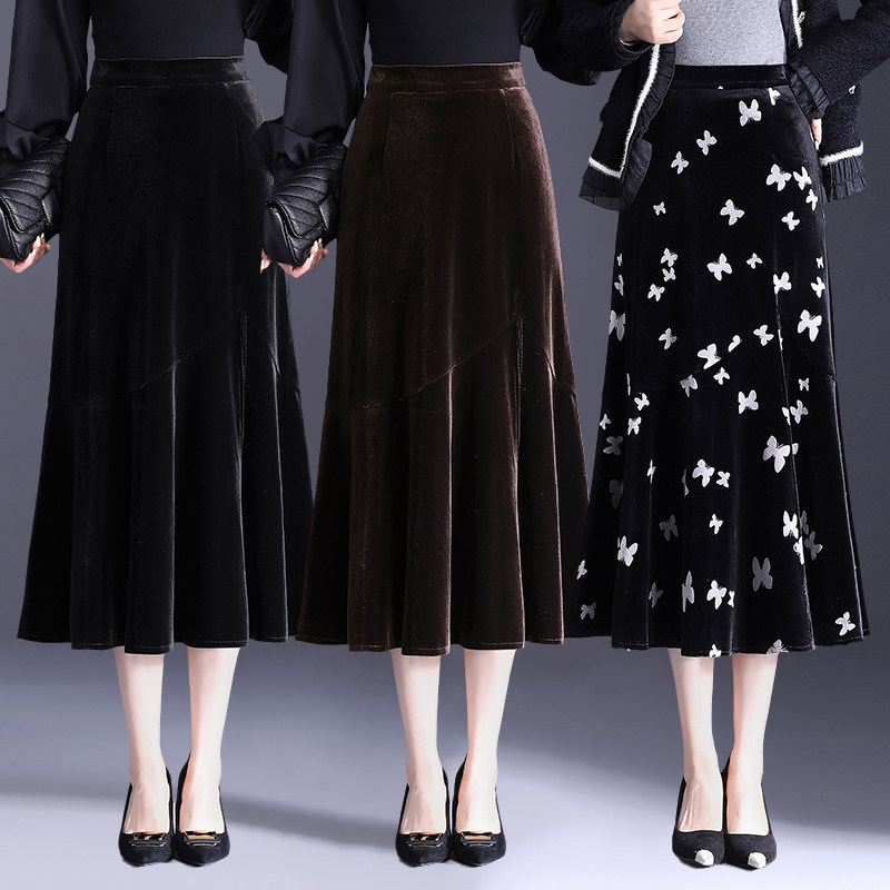 时尚中年女装秋冬半身裙百搭垂感金丝绒裙春秋季大码中长款妈妈装