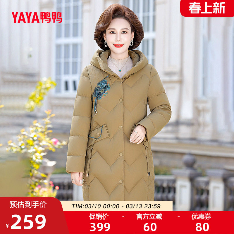 鸭鸭妈妈装羽绒服女2025冬季新品中老年显瘦民族风连帽中长款外套