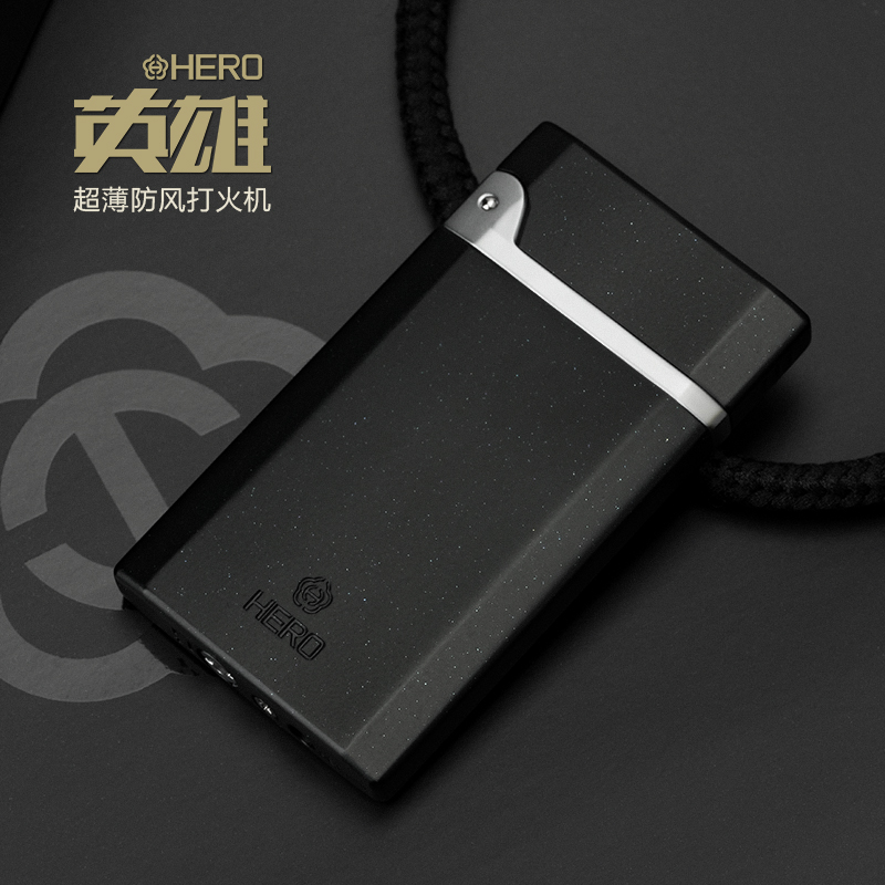 HERO英雄超薄防风打火机直喷防风扁火男士商务火机男友礼物礼盒装