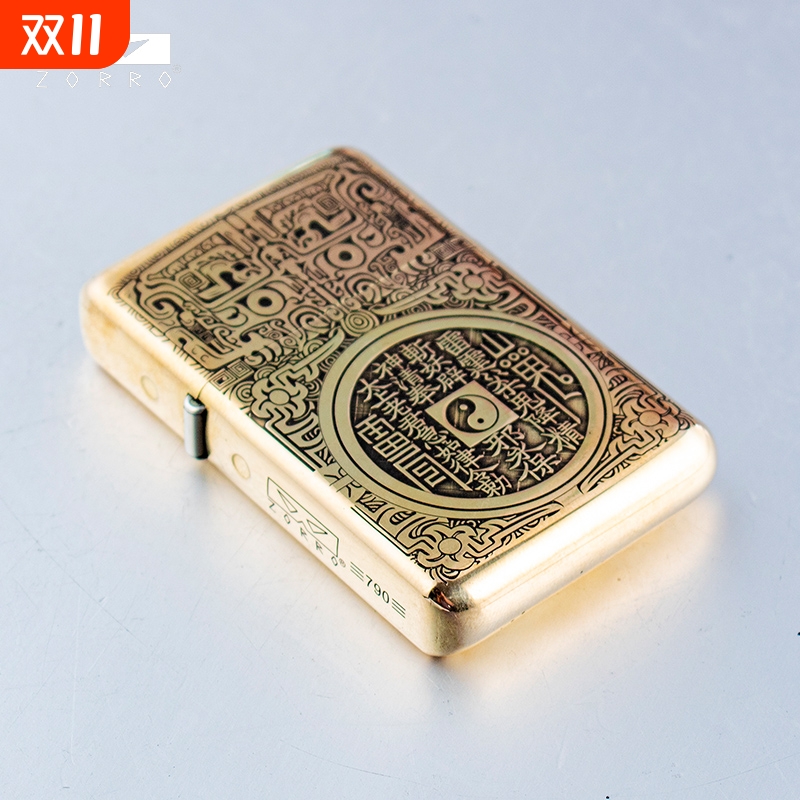 ZORRO佐罗山鬼花钱超薄防风打火机正品790新款三代男士怀旧耐用