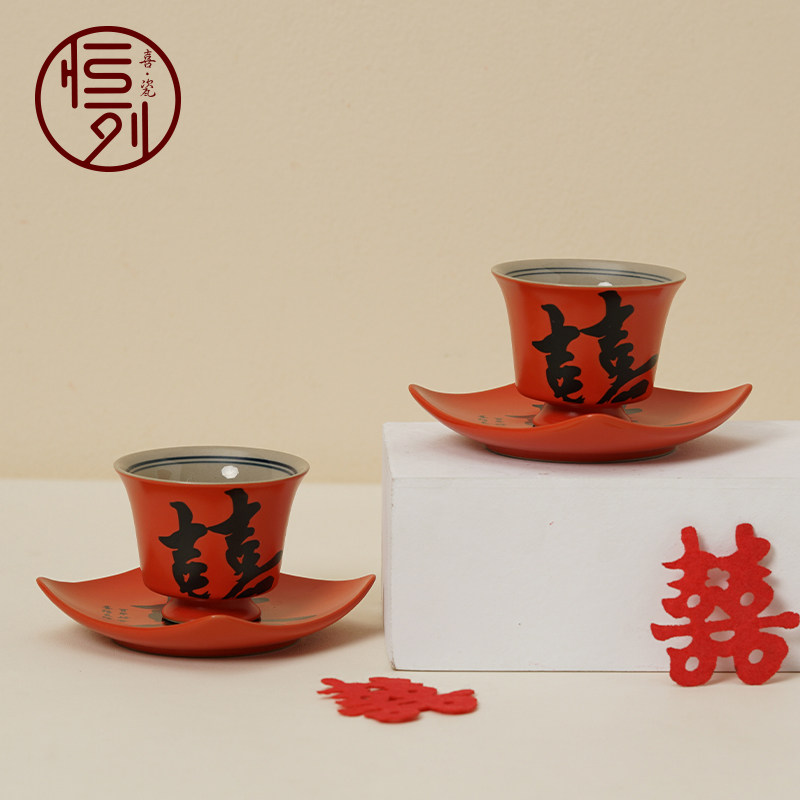恒列新婚敬茶杯一对结婚新人婚礼改口喜庆小茶杯套装中式敬酒杯子