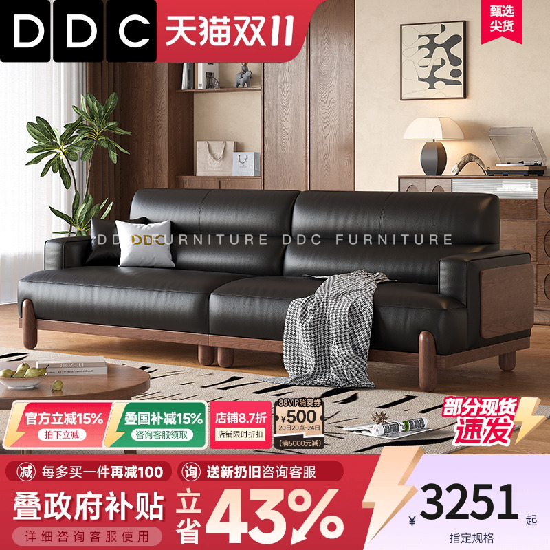 政府补贴DDC奥黛丽黑糖沙发客厅中古风真皮沙发新款复古黑色沙发
