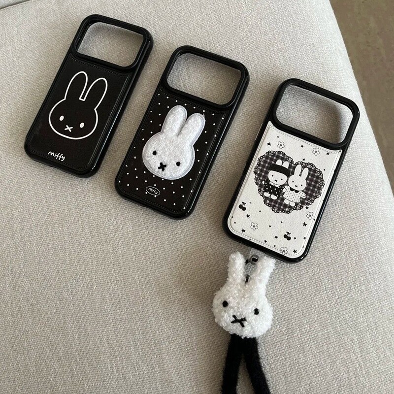 ins日系简约卡通小兔子适用iPhone16promax手机壳苹果15新款14pro可爱13pro网红12女13小众皮纹17全包防摔套