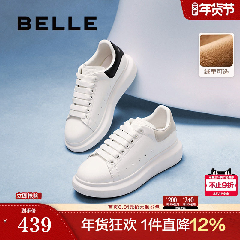 百丽加绒保暖百搭小白鞋子女春新厚底增高舒适休闲板鞋B3012AM6预