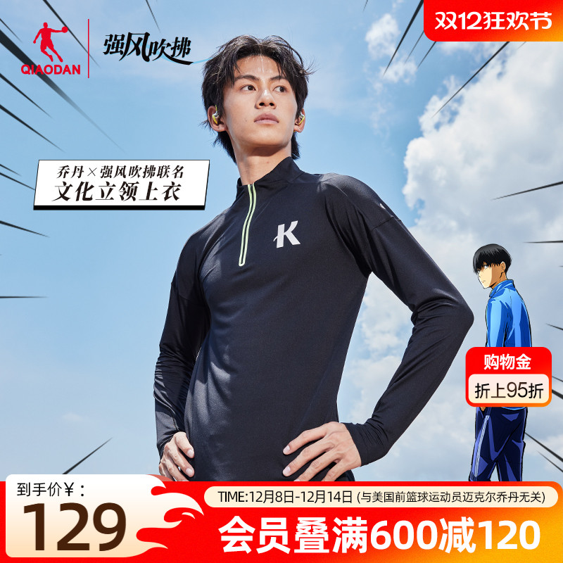 乔丹强风吹拂IP联名大K运动长袖男2025秋季修身速干透气跑步上衣