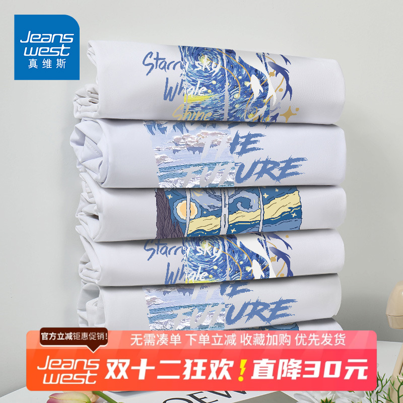 GV真维斯重磅纯棉男士长袖男生白色宽松打底衫2025新款内搭上衣B