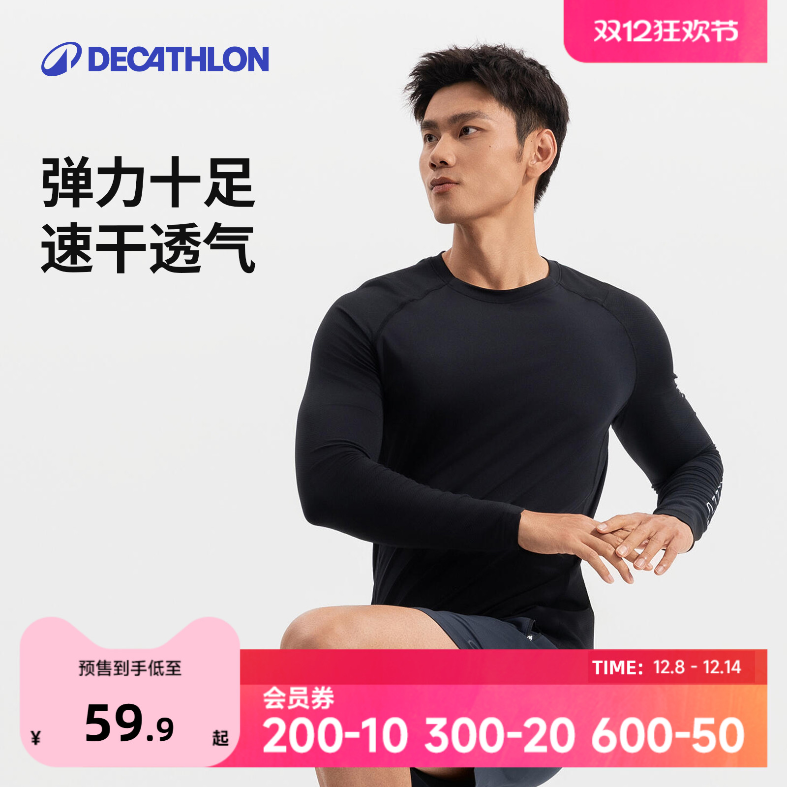 迪卡侬速干长袖男秋透气打底上衣健身长袖跑步速干衣运动t恤SAX2