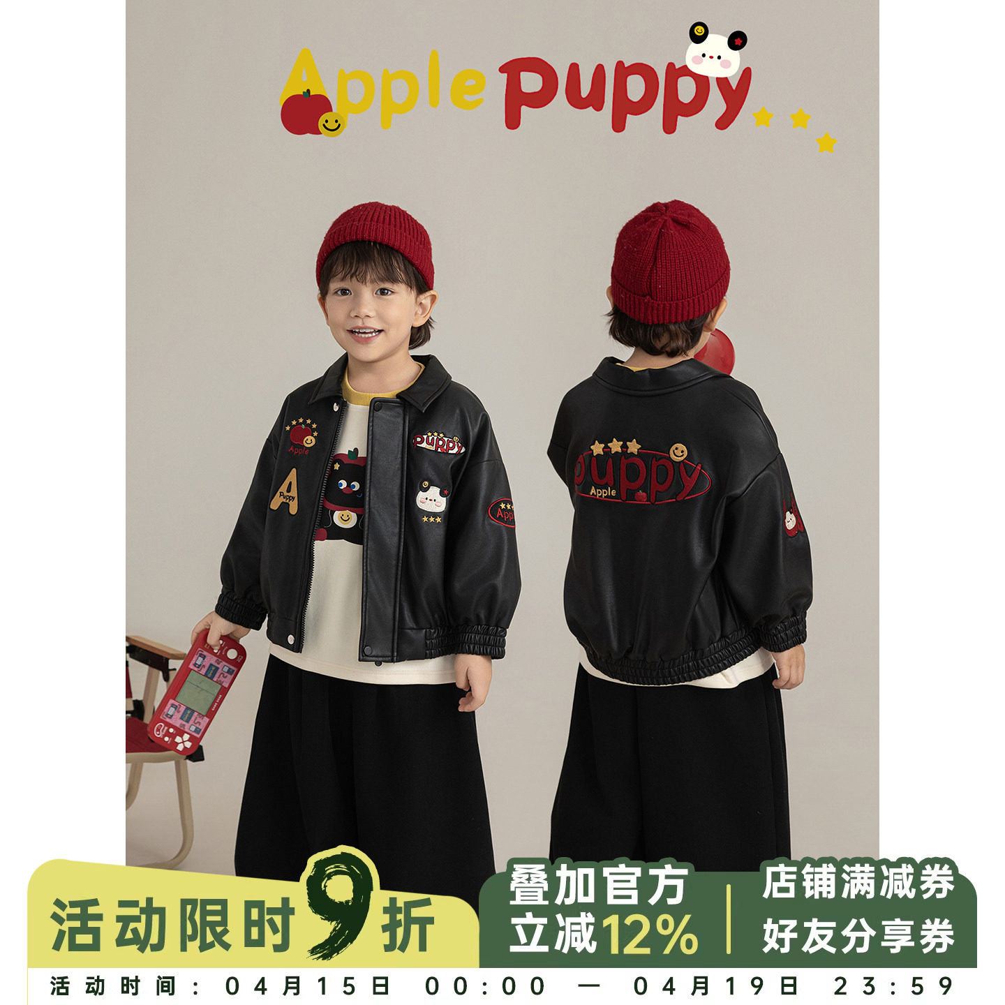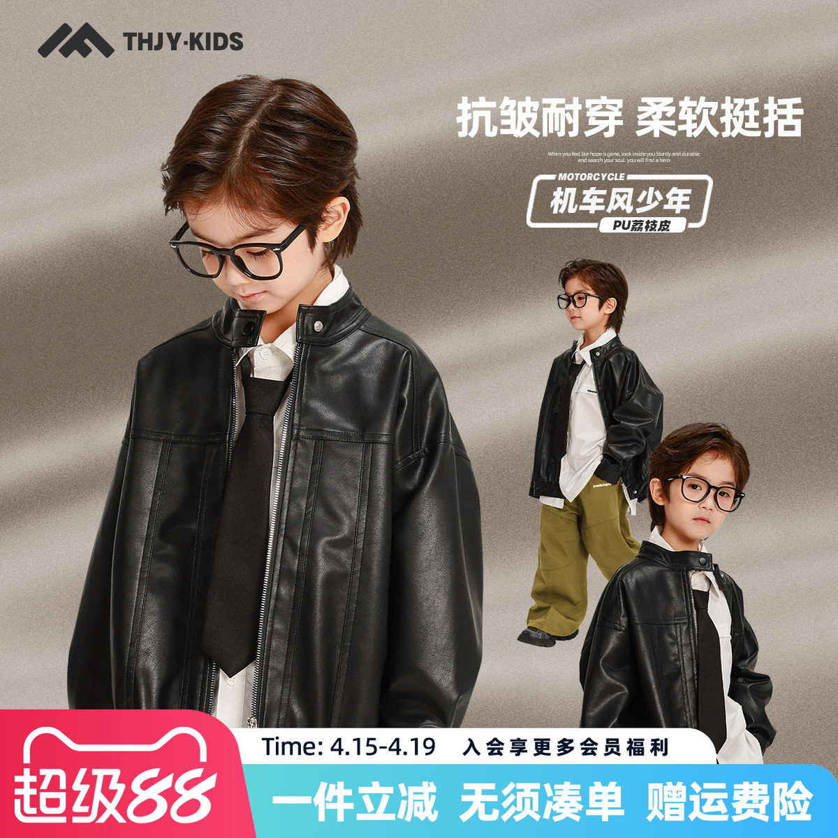 砚台家童装韩系儿童复古皮衣帅气秋装春款男童帅气夹克男宝宝外套
