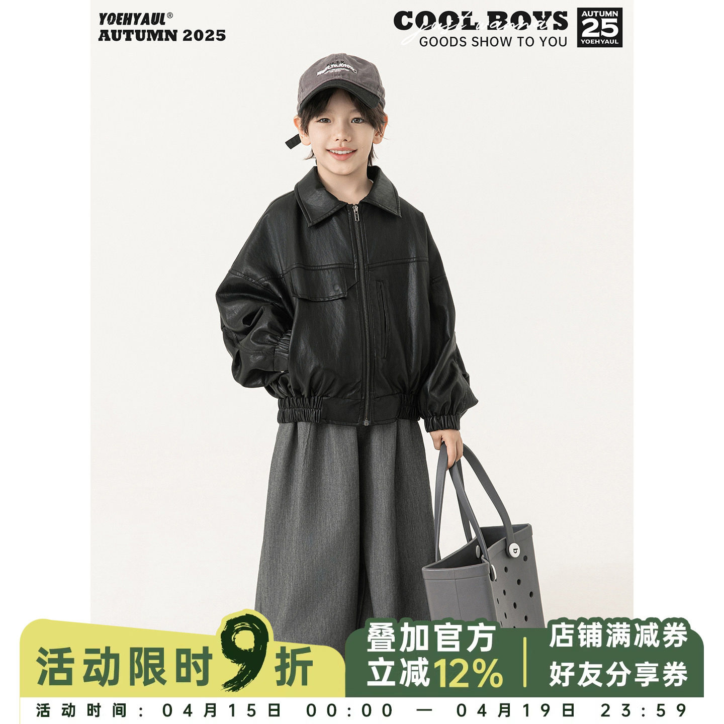 多多家男童皮衣外套2026春秋新款儿童中大童宽松休闲夹克上衣春装