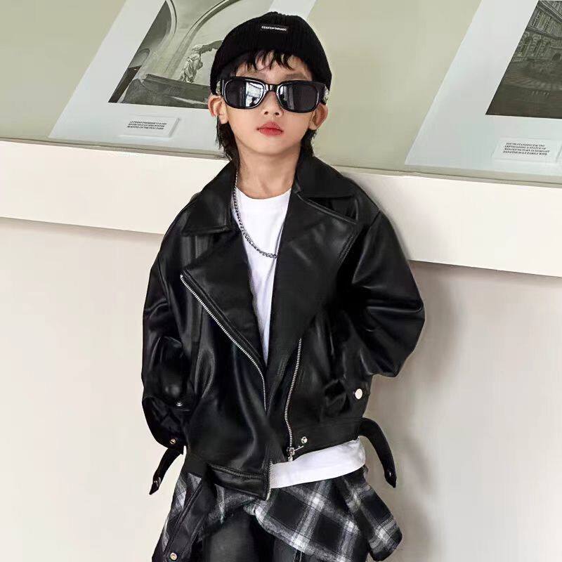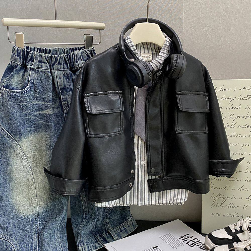 2026春秋季新款儿童皮衣复古机车短款外套帅气韩版男女童pu皮夹克
