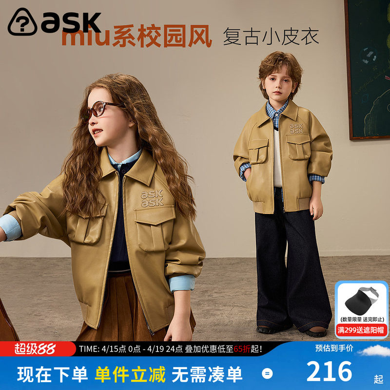 ask儿童外套2026春季新款男女童复古小皮衣学院风上衣中大童长袖