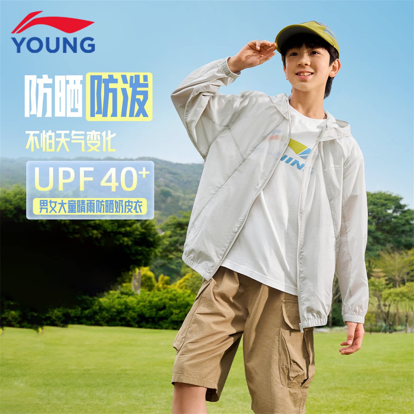 李宁儿童防晒衣轻薄男童女童26夏季新款学生凉感透气防泼水奶皮衣