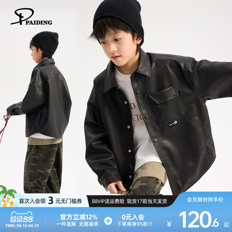 派町童装男童外套2026春季新款儿童皮衣夹克翻领上衣男童防风洋气