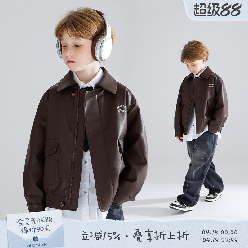 多多家男童皮衣外套2026春秋新款儿童中大童宽松休闲夹克上衣秋装