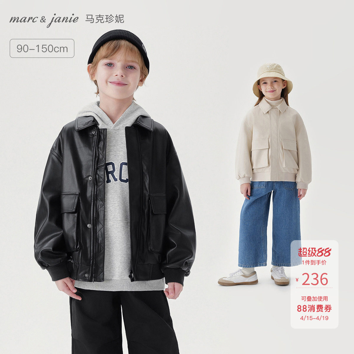 马克珍妮男女童时尚潮流大口袋皮衣夹克儿童外套春装新款241016