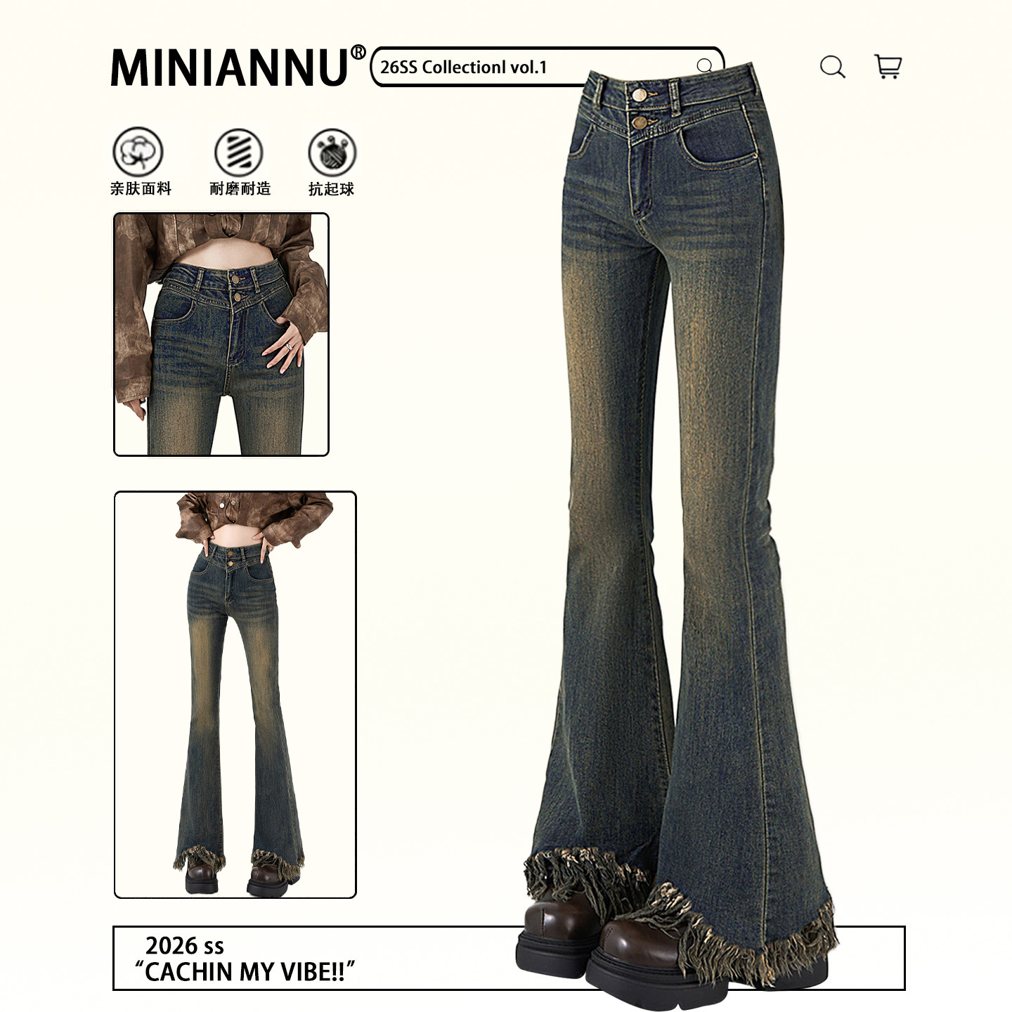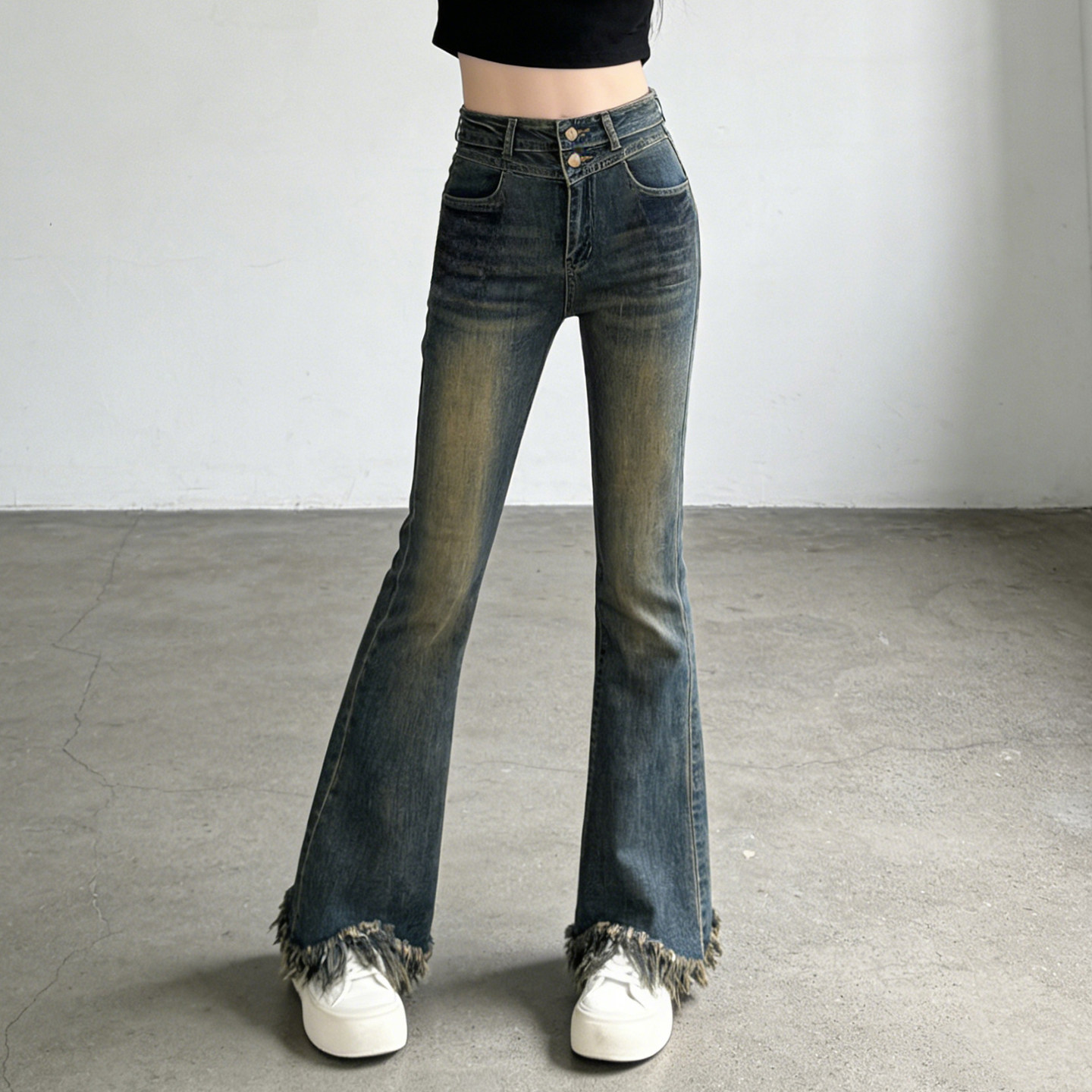 复古毛边流苏牛仔裤女春秋季2026新款辣妹修身显瘦高腰微喇叭裤子