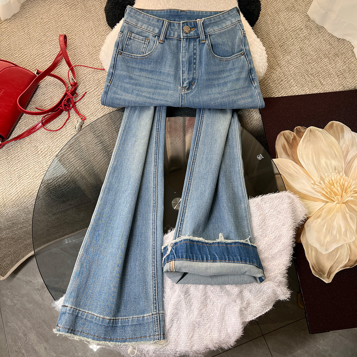 - 牛仔喇叭裤