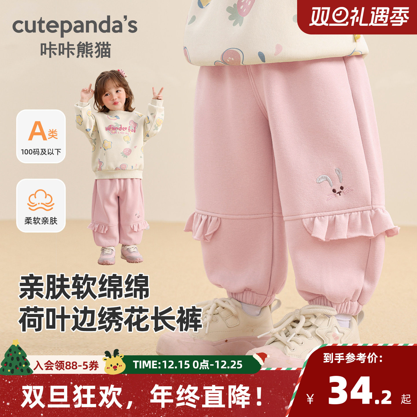 咔咔熊猫女童花边针织裤春装宝宝休闲裤子春款女宝长裤春秋童装潮
