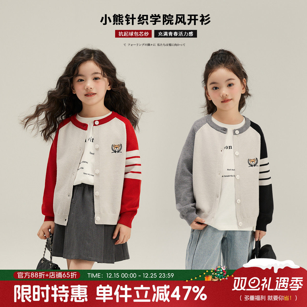 巴拉巴拉童装儿童毛衣男女童2026新款春装针织开衫红色毛衫拜年服