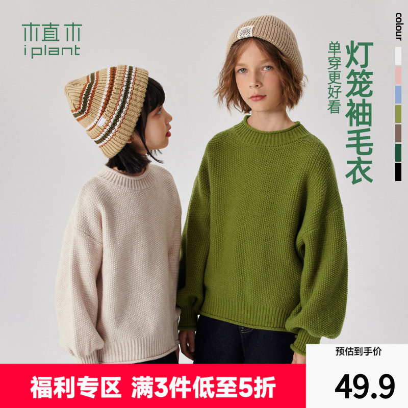 植木童装桂花针织卷边灯笼袖男女童毛衣中大童2025春装新款儿童