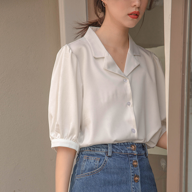 - 泡泡袖白衬衫