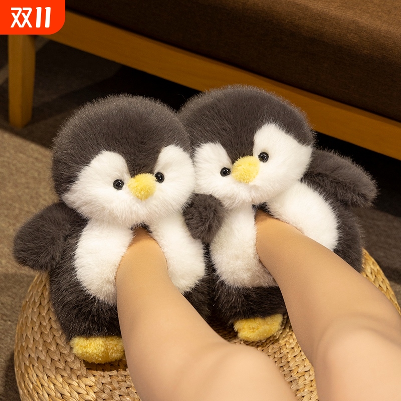 企鹅棉拖鞋秋冬季室内居家厚底包跟毛绒玩具可爱拖鞋公仔玩偶女生