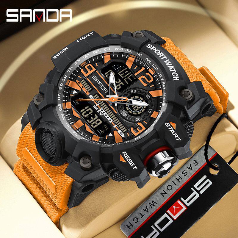 三达新款手表双显潮流时尚男士学生青少年男女防水多功能情侣腕表