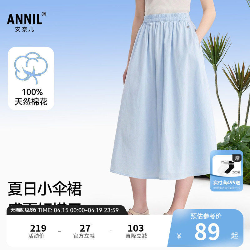 【清新夏日】安奈儿童装女童半身裙26夏新款纯棉纯色A字中长裙子