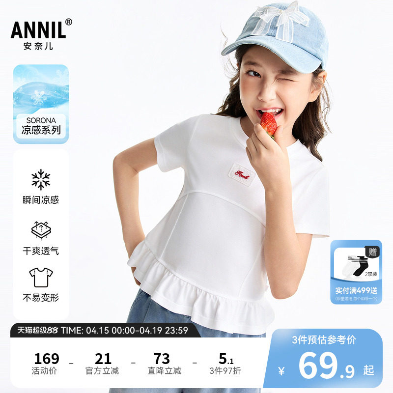 【记忆棉凉感T】安奈儿童装女童圆领短袖T恤2026夏新款甜美透气