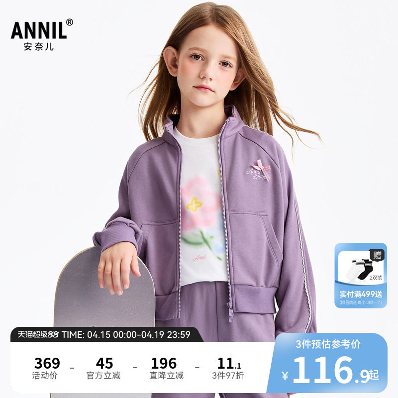 安奈儿童装女童外套2026春新款户外运动短款甜美时尚潮流宽松上衣