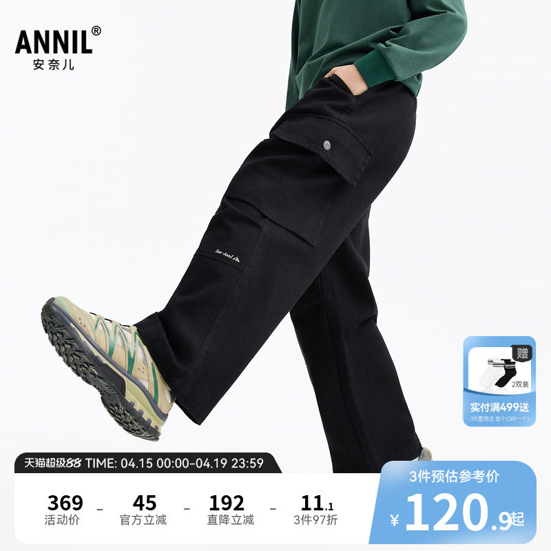 安奈儿童装男童女童裤子2026春新款工装风全棉透气休闲宽松长裤