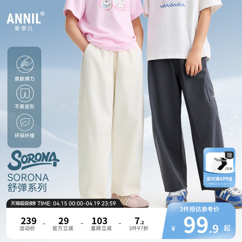 【记忆棉弹弹裤】安奈儿童装男童女童裤子2026夏新款宽松休闲长裤