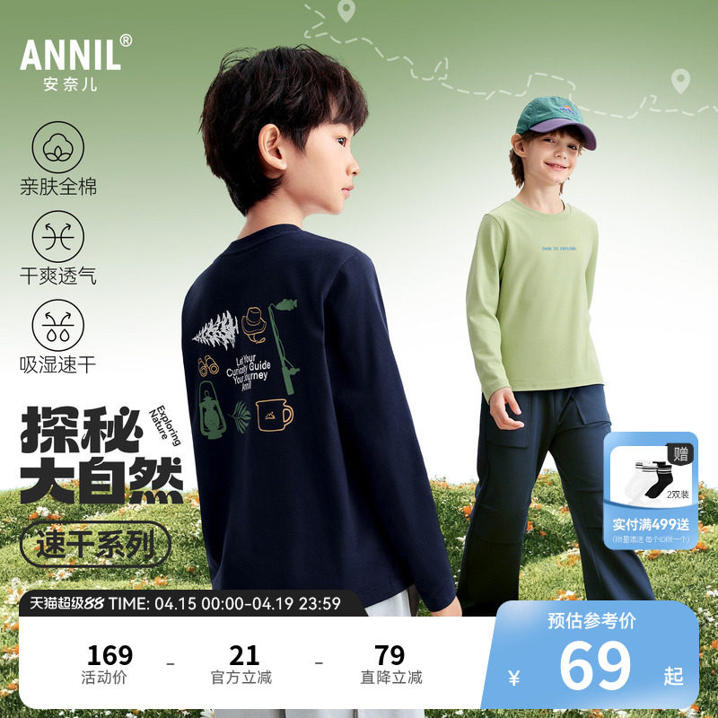 【全棉速干T】安奈儿童装男童圆领长袖T恤2026春新款运动休闲透气