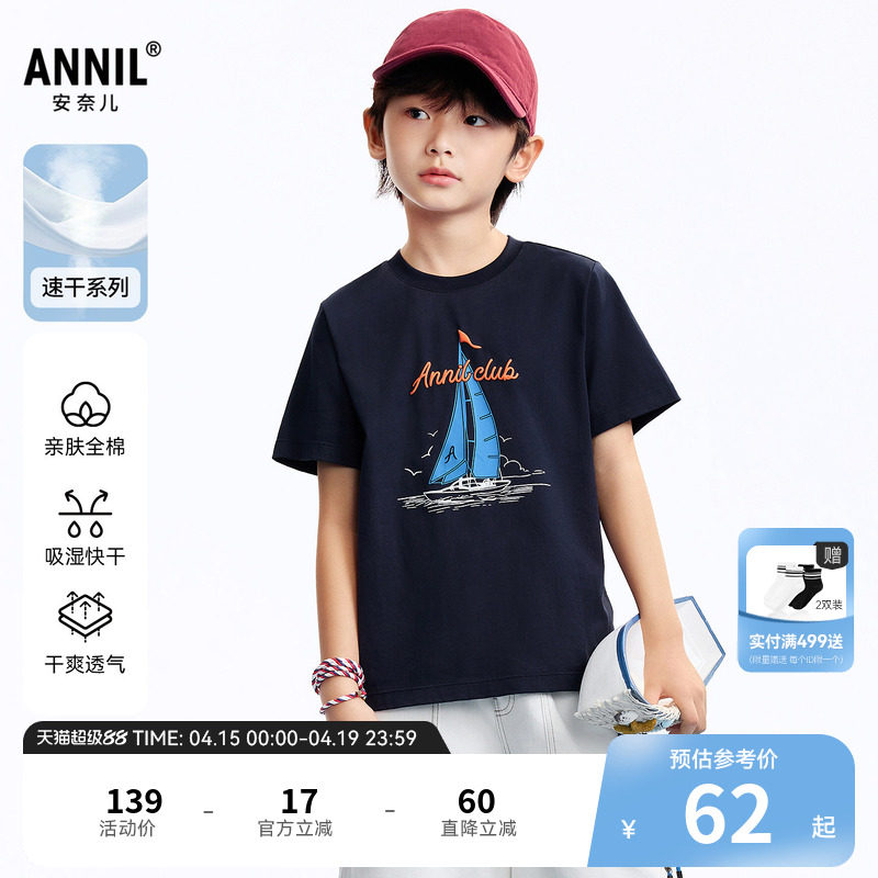 【全棉速干T】安奈儿童装男童圆领短袖T恤2026夏新款运动休闲透气