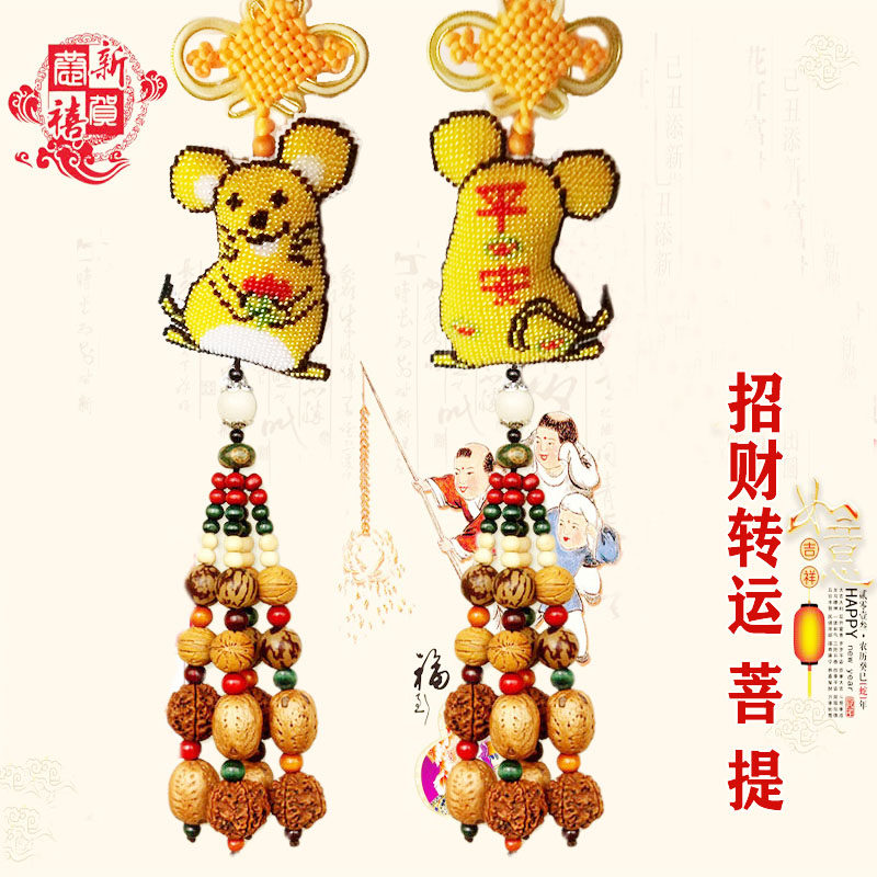 手工串珠中国结汽车挂件十字绣平安高档吊坠材料包珠绣自己绣财神