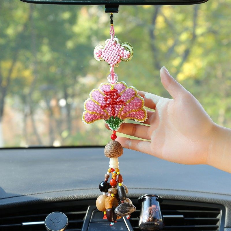 平安符汽车高档挂件内饰吊坠手工珠绣平安福成品材料自己绣十字绣
