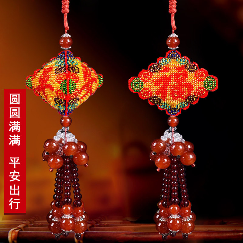 出入平安福汽车高档挂件装饰吊坠手工珠绣吉祥如意符十字绣客厅挂