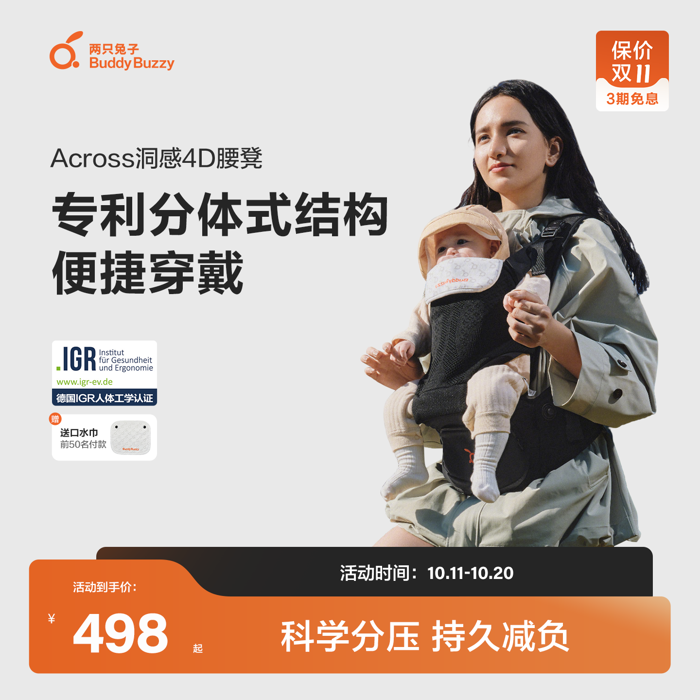 【双11预售】两只兔子4D洞感腰凳婴儿背带二合一透气轻便款四季