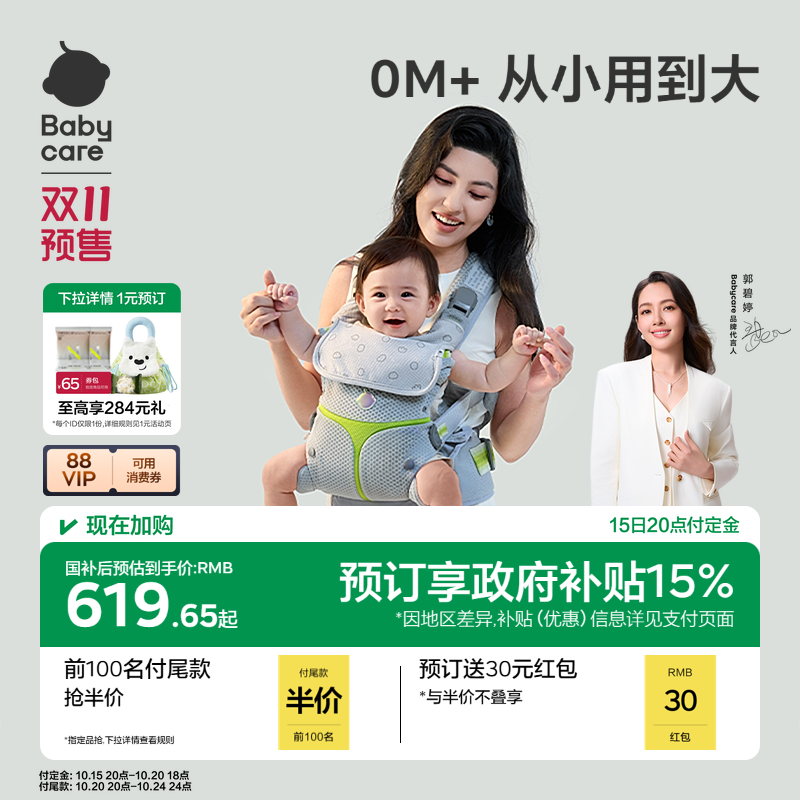 babycare全阶腰凳婴儿背带三合一宝宝轻便背带小月龄外出抱娃神器