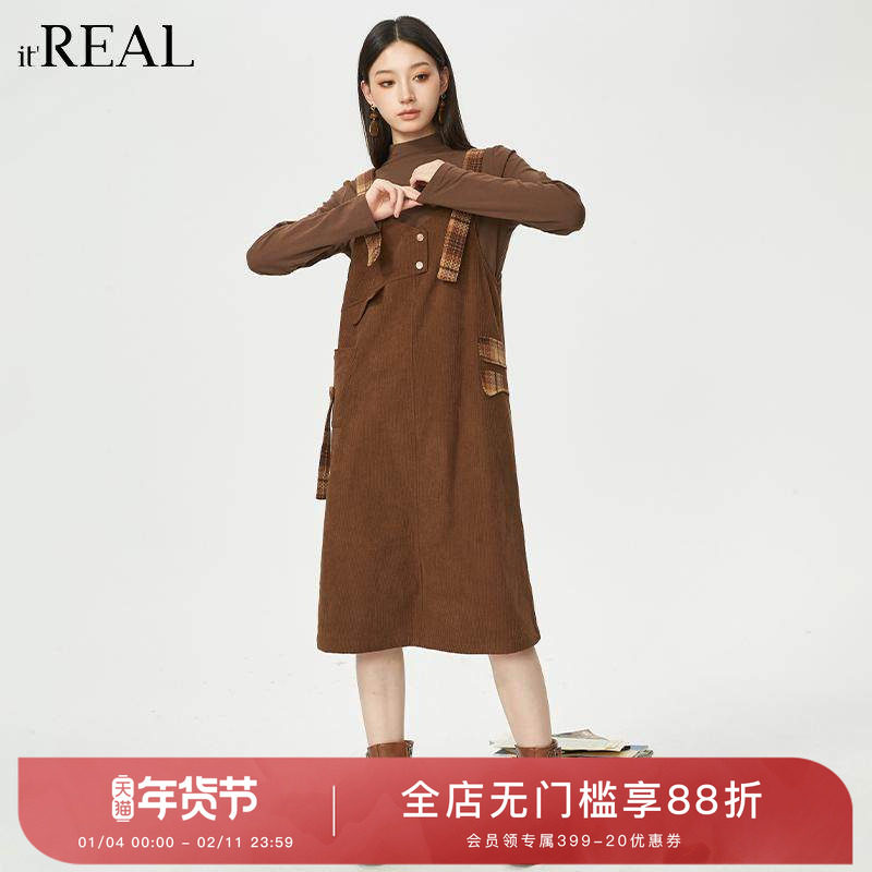 灯芯绒背带裙女春秋文艺百搭学院风条绒连衣裙叠穿休闲吊带直筒裙
