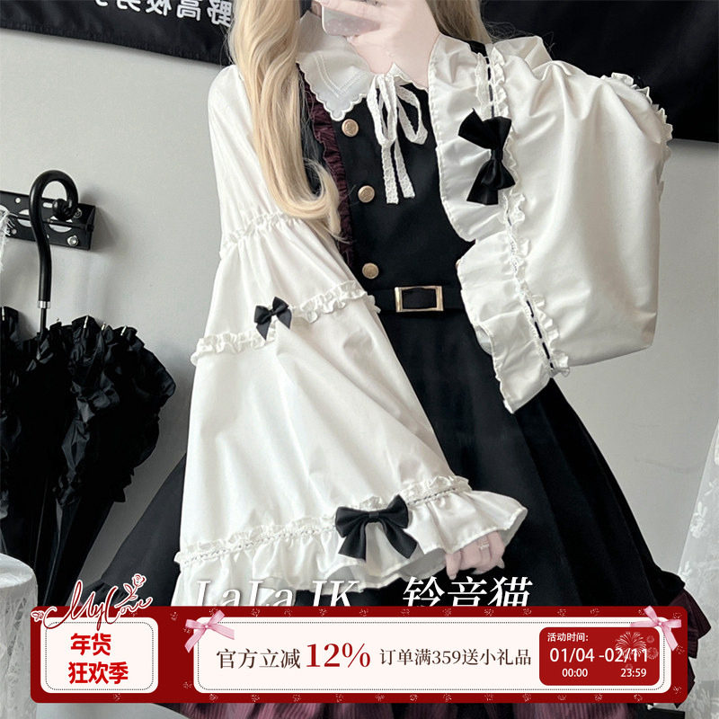 啦啦酱 铃音猫 学院风连衣裙两件套限定版姬袖上衣红黑拼接背带裙