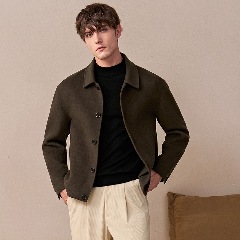 秋冬季短款毛呢翻领男士呢子大衣新款休闲双面呢子夹克高级感上衣
