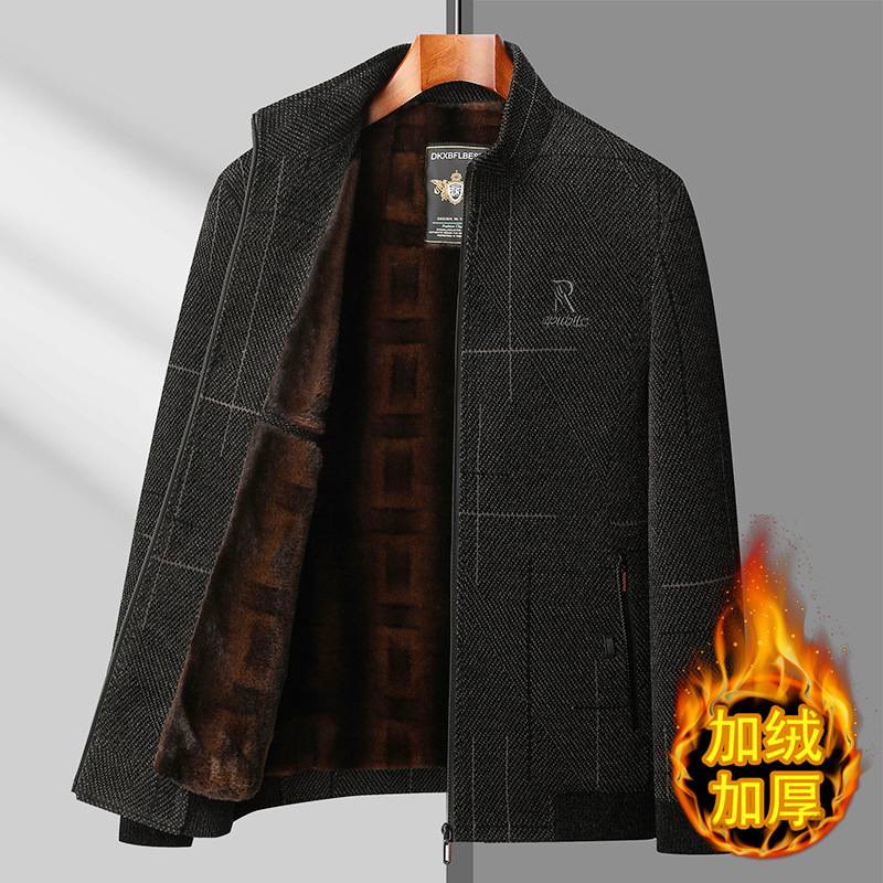 立领羊毛呢外套秋冬季新品休闲夹克双面呢中年爸爸装男士呢子大衣