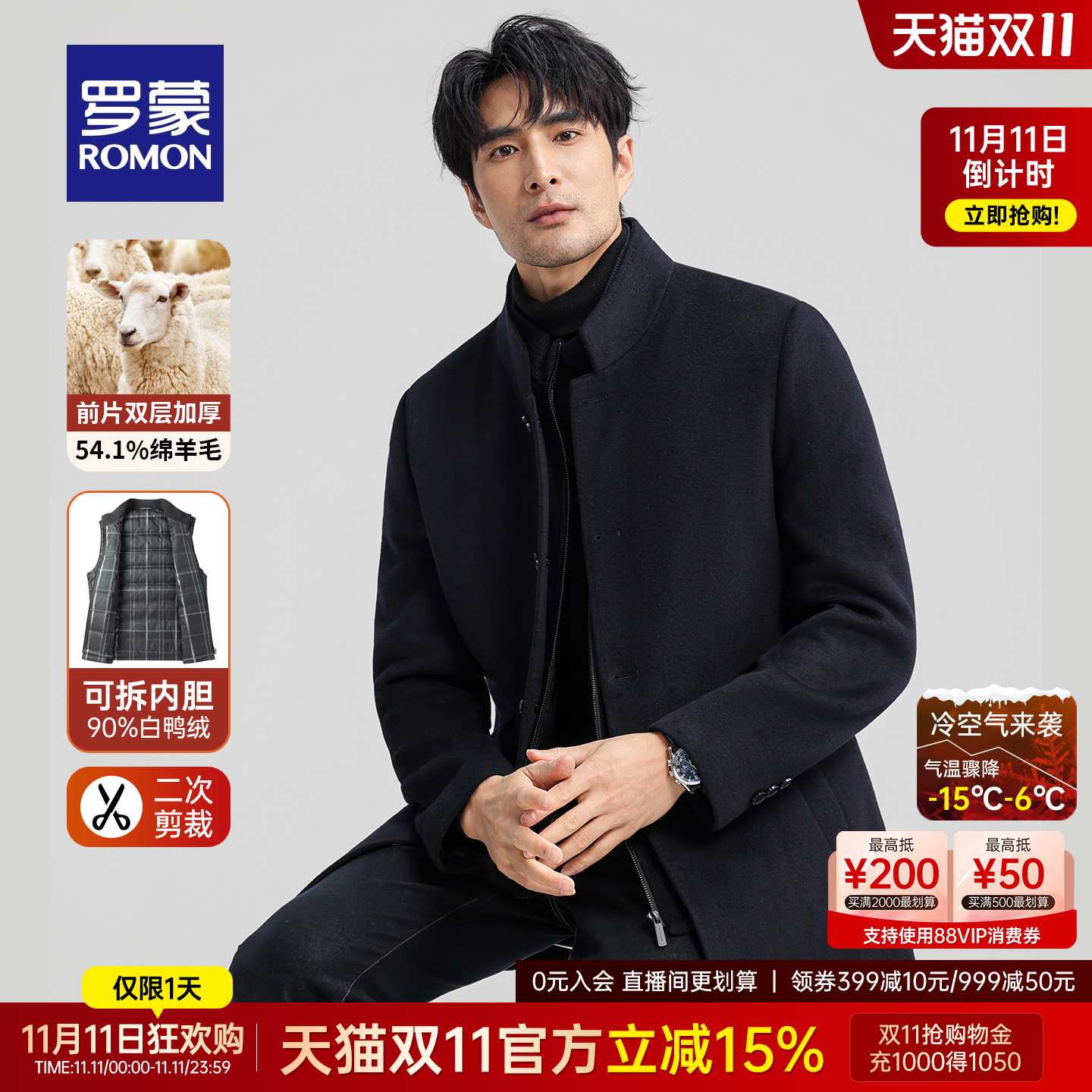 【可拆卸羽绒内胆+含羊毛】罗蒙男士呢子大衣2025冬季新款外套男