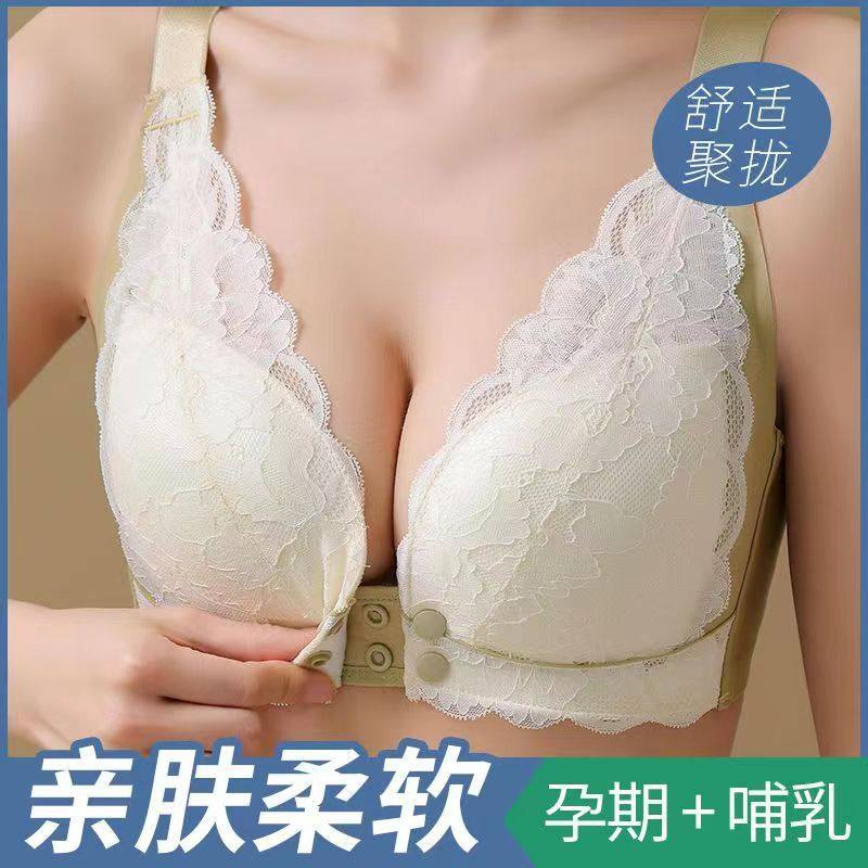 哺乳内衣薄款前开扣式孕妇聚拢防下垂孕期产后喂奶专用蕾丝文胸罩