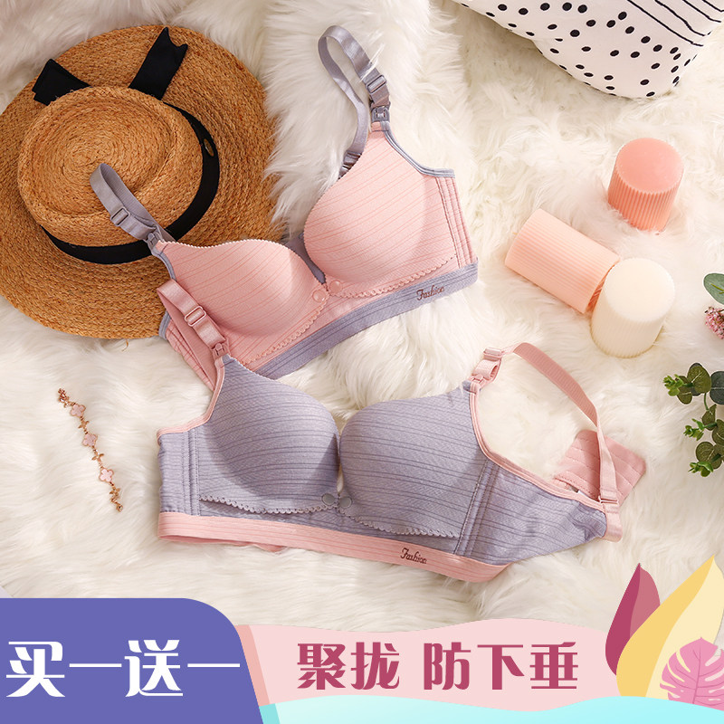 前开扣式哺乳文胸无钢圈薄海绵内衣收副乳聚拢防下垂产后喂奶专用