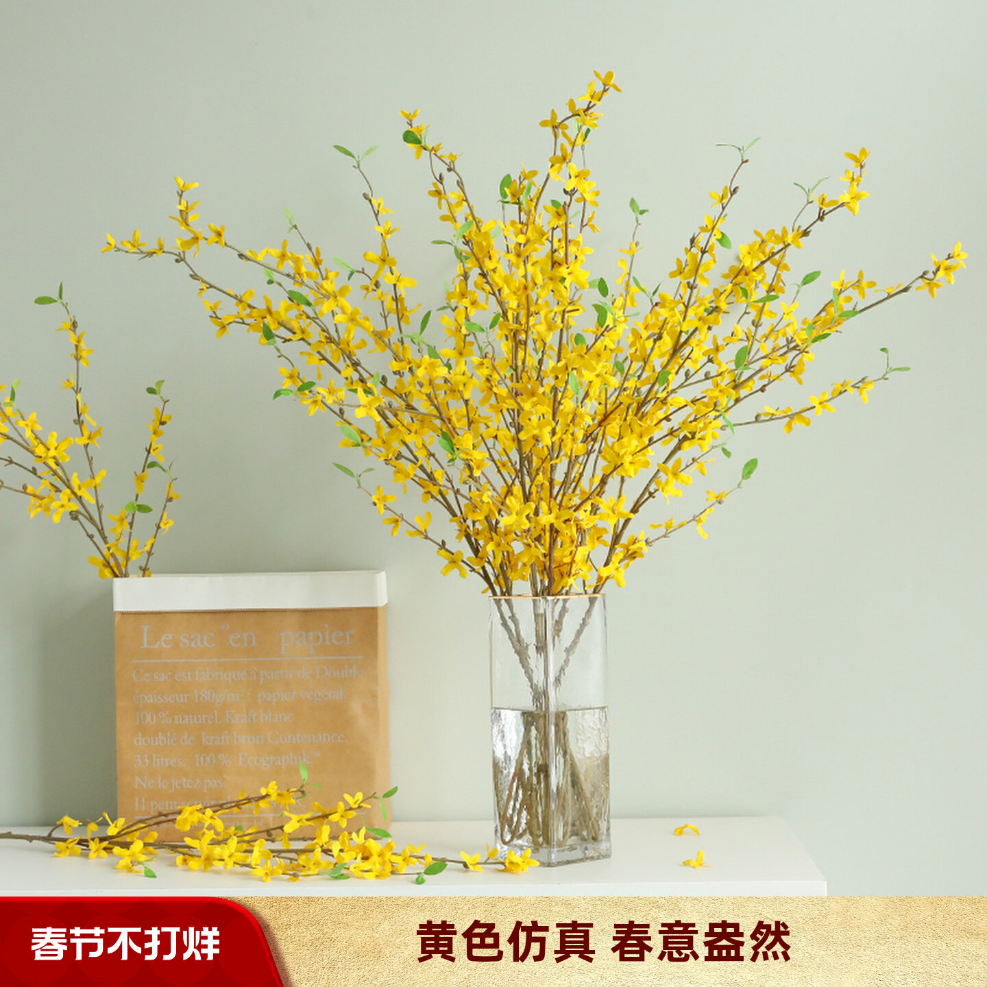 黄色迎春花仿真花高品质室内客厅桌面单支假花落地样板间装饰摆设