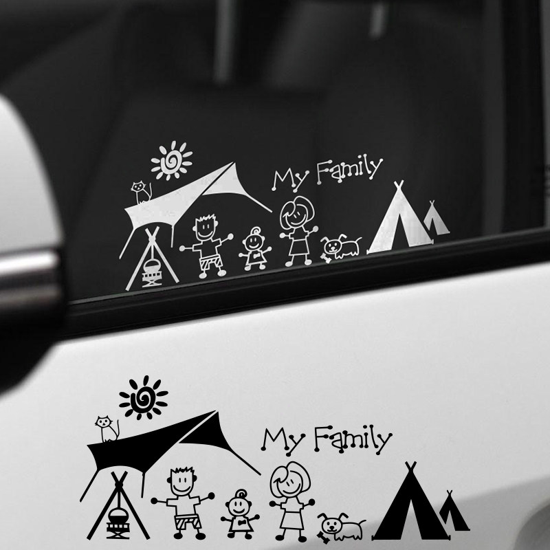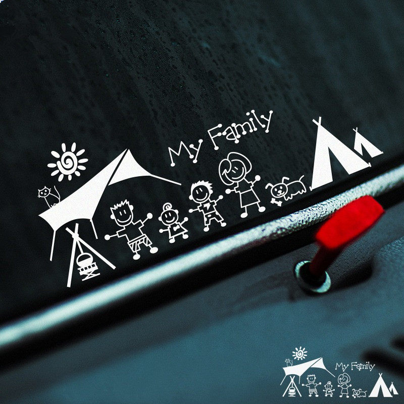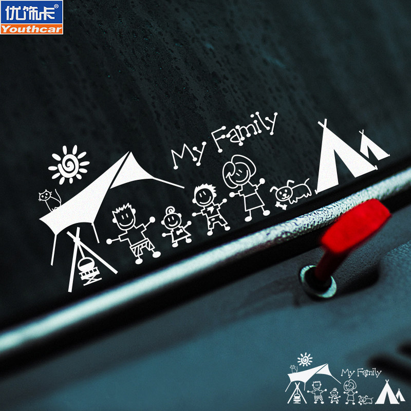 三口四口之家户外露营野炊个性创意汽车贴纸电动车装饰车贴车身贴