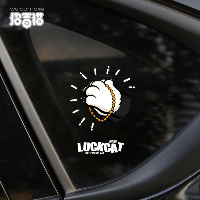 招吉猫贴纸个性趣味佛手猫爪车贴车身贴遮挡划痕电动车摩托车装饰